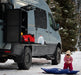 Direct-fit rear door gear rack for 2019+ Sprinter 180° hinge models, providing a no-drill mounting base for storage boxes, bikes, and fuel containers.
