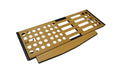 RB's Panel Adjustable Width Panel Bed allows you to choose your mounting height. Our beds can collapse down to 60" and extend out to 72". Each bed is hand fabricated in aluminum and built using stainless steel hardware. Choose from either a black laminated 3/8" hex board or add a little style with our 1/4" bamboo top panels. Each bed frame panel comes with two spring loaded self locking pins which allow the bed to be securely mounted onto the bed mounting rails. Our open hole top panel design allows for your bed cushion or mattress to give a little, allowing the mattress to feel softer and in return a better nights sleep.