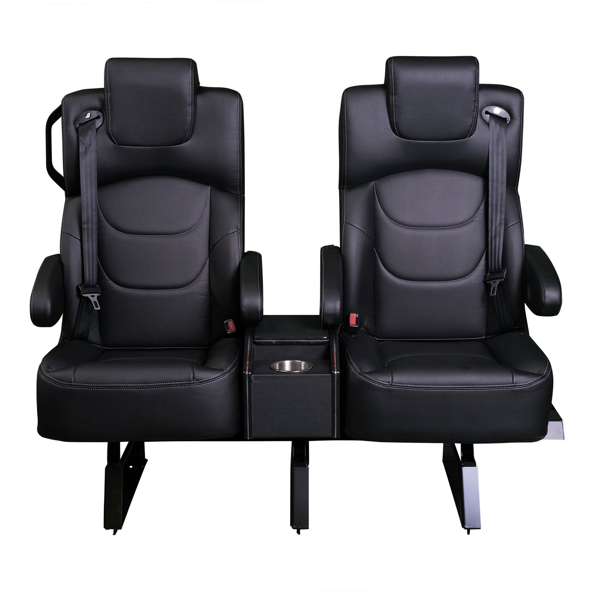 (FRONT ROW / ROW 2) 2x 20” SUPER VIP SEATS, 4x ARMRESTS, BASE 6301 + 3 LEGS, 1x CENTER CONSOLE, 2x CRS, 1X GRAB HANDLE